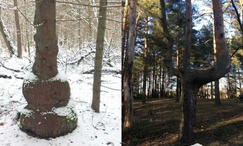 На территории национального парка «Беловежская пуща» заметили ель с необычным стволом. Его нижнюю часть сравнивают с кеглей или матрешкой. На наш скромный взгляд, ель иронично напоминает верхушку для новогодней елки.