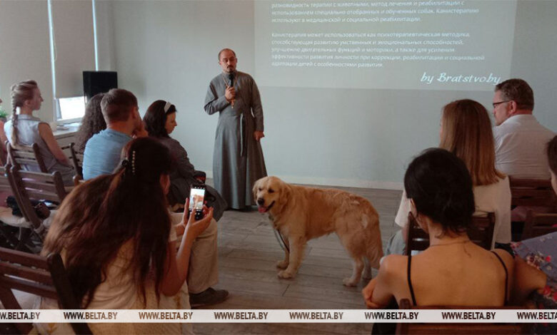 В Минске сегодня презентовали новое направление работы Синодального отдела по церковной благотворительности и социальному служению Белорусской православной церкви — реабилитацию взрослых и детей с особенностями здоровья при помощи специально обученной собаки (канистерапии).