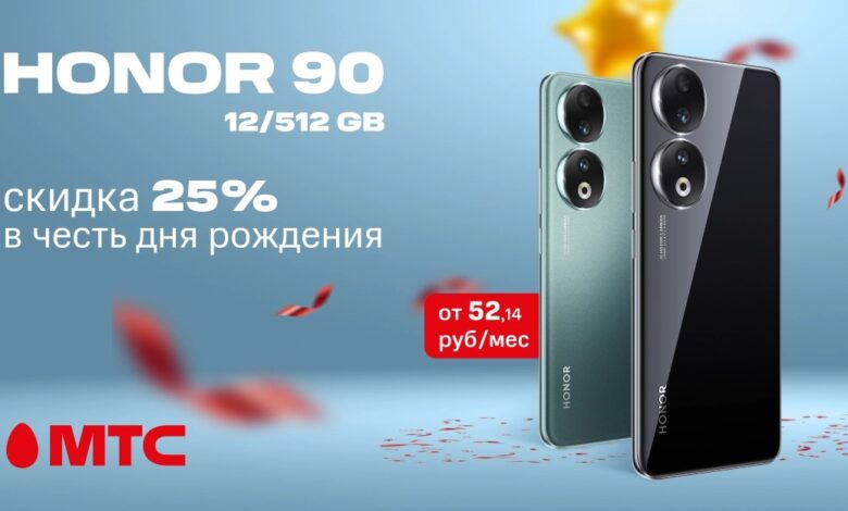 Отличное предложение в честь дня рождения МТС! Приобретайте производительный смартфон HONOR 90 со скидкой 25% в рассрочку до 24 месяцев без переплат и первого платежа. Ежемесячный платеж составит от 52,14 рубля в месяц.