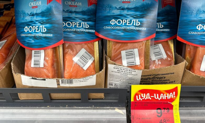 Цыпленок-бройлер стоит 5,99 рубля за кг, свинина (лопаточная часть) – 6,99, шашлык из птицы в горчичном соусе – 7,29. Сервелат «Барбадос» обойдется в 11,99 рубля за кг, сырокопченая колбаса «Оригинальная европейская» – 19,99, а говяжьи сардельки – 6,99. Набор из замороженного лосося – всего 11,99 рубля за кг, королевские креветки – 20,89 за кг, а слабосоленая форель – 9,79 за 200 г.