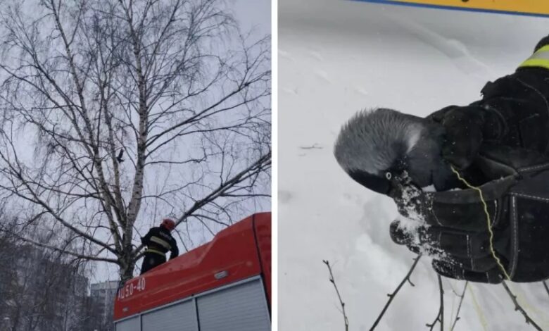 Доброта дня. В Гомеле бойцы МЧС спасли застрявшую на дереве ворону (Видео)