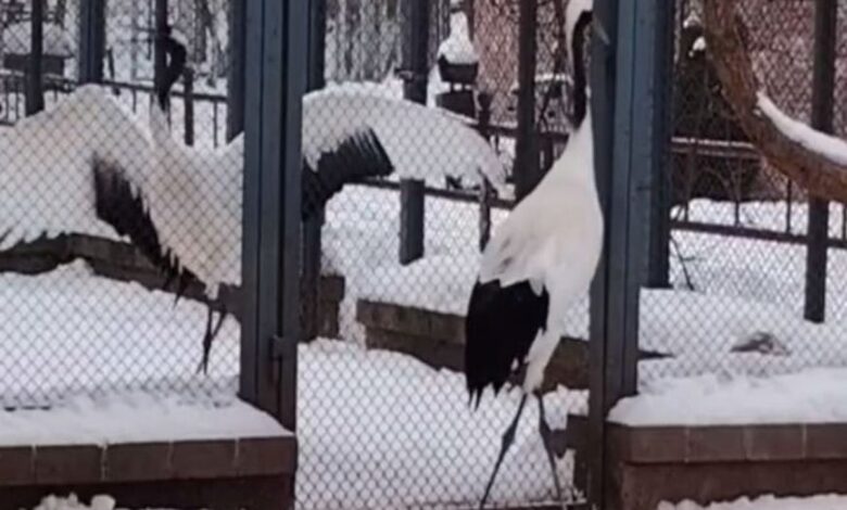 Джулия приехала первой — в 2024 году. Год спустя коллекцию пополнил Ричард. Поначалу птицы были слишком молоды для создания пары, поэтому их поселили в разных павильонах. Осенью 2025 года самочку перевели в вольер по соседству. Журавли получили возможность видеть друг друга, но знакомиться вплотную было ещё рано: чтобы избежать травм и конфликтов, общение происходило исключительно через сетку.