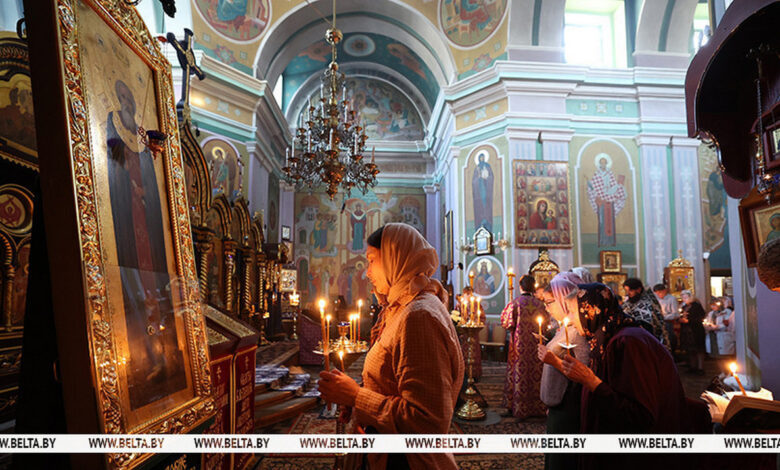 Православные верующие отмечают Великий четверг перед Пасхой в Гродненском Свято-Рождество-Богородичном женском монастыре.