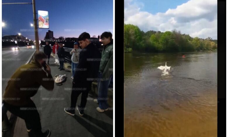 В Гродно лебедь запутался в троллейбусных проводах — его спасли и вернули в дикую природу