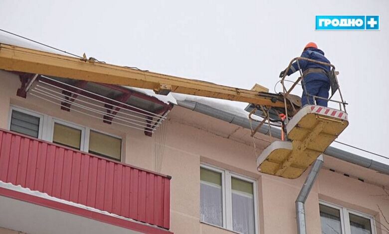 Опасность сверху: в Гродно освобождают крыши от снега и сосулек