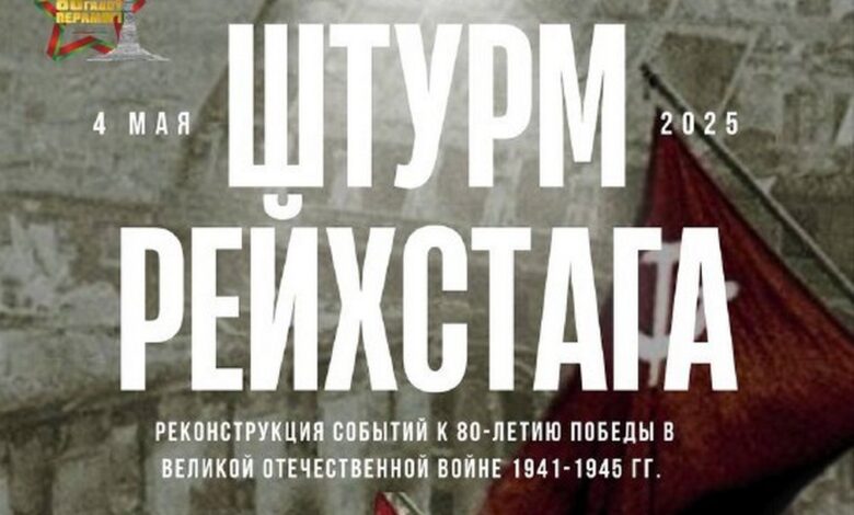 4 мая в 14.00 на площади Советской воспроизведут события последних дней перед Победой. Дворец культуры текстильщиков станет «рейхстагом». Над ним возведут купол, над которым в завершение 20-минутной эффектной реконструкции штурма будет развеваться Знамя Победы.