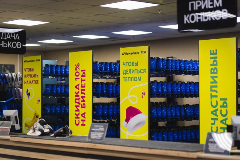 Приорбанк представил каток в ТРК Triniti. На нем можно бесплатно кататься по вторникам в 19.00. Достаточно только показать карточку Visa Приорбанка. По ним же во все дни действуют скидки на вход.