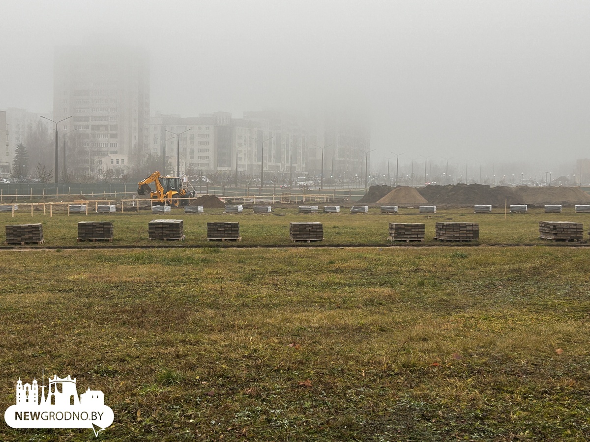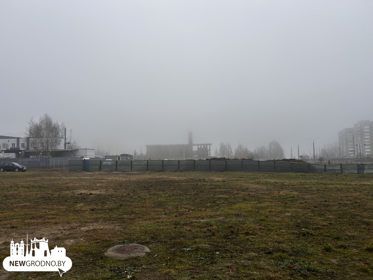 В стройплощадку превратился большой пустырь в районе пересечения улиц Лиможа и Курчатова в самом сердце спального района Девятовка в Гродно. Работы стартовали активно: как только территорию огородили, на площадке появилась техника.