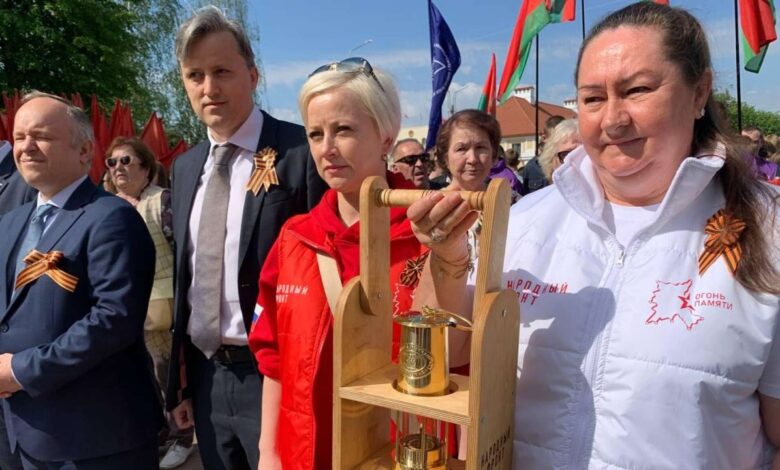 Лампадку со священным пламенем, который был взят от Вечного огня на могиле Неизвестного солдата в Александровском саду в Москве, привезли в Гродно. Церемония передачи пламени прошла в парке Жилибера в субботу, 4 мая.