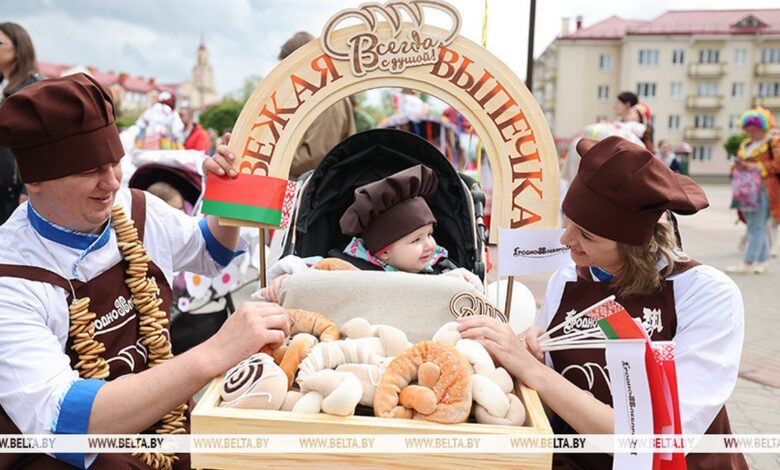 А вот работники «Гроднохлебпром» супруги Вадим и Екатерина Седач решили поддержать свое предприятие и коляску превратили в мини-кондитерскую с разной выпечкой. «Все своими руками делали работники нашего предприятия. Я четыре года проработала на заводе машинистом — пакую хлеб, сейчас в декретном отпуске, работа нравится, жду возвращения. Муж работает электромонтером на «Гроднохлебпром». Глава нашей «кондитерской» — Виктория, ей 10 месяцев, — рассказала Екатерина Седач. — Очень здорово, что у нас в городе есть такая замечательная традиция. Очень красивый праздник».