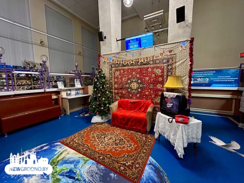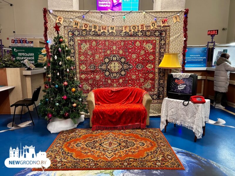 Ковер на стене, «толстый» телевизор и дисковый телефон: в Гродно создали новогоднюю фотозону в стиле 1990-х