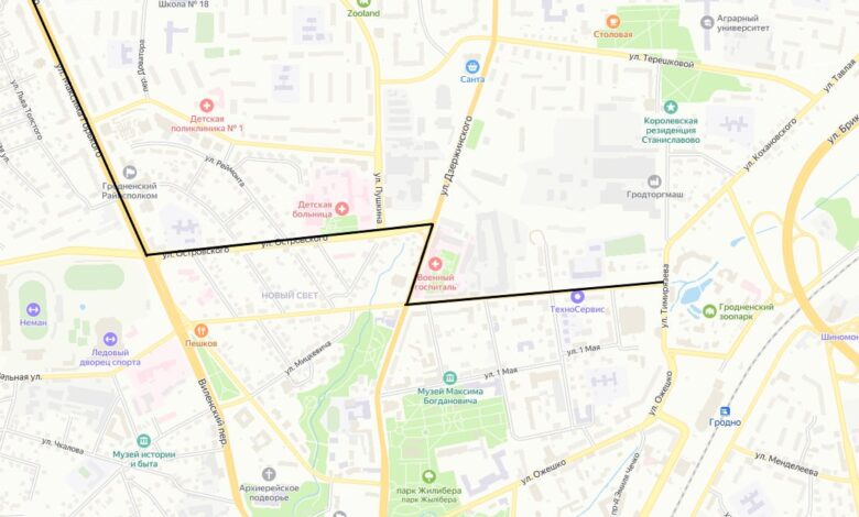 В обратном направлении: остановочный пункт «Санаторий «Неман-72» – остановочный пункт «Центр мебели «Пинскдрев» (без изменений), затем ул. Максима Горького – ул. Островского – ул. Дзержинского – ул. 17 Сентября и далее по своему маршруту без изменений.