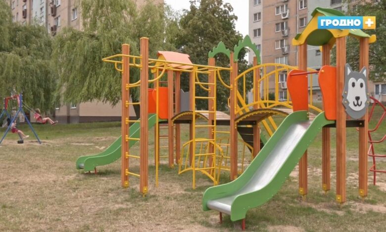 Менее месяца назад во дворе дома Домбровского, 60 установили игровую площадку: песочницу, качели, горки и балансир. Деньги на ее постройку выделили ряд организаций Ленинского района. Общая стоимость составила порядка 18 000 белорусских рублей.