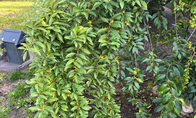 Еще одна красота из одного из частных дворов. Здесь в сентябре цветами порадовала хозяйку форзи́ция (еще ее называют форсайтией). Обычно ярко-желтые цветы здесь появляются в апреле, еще до того, как распустятся даже листья. Но в этом году растение решило зацвести еще и в сентябре.