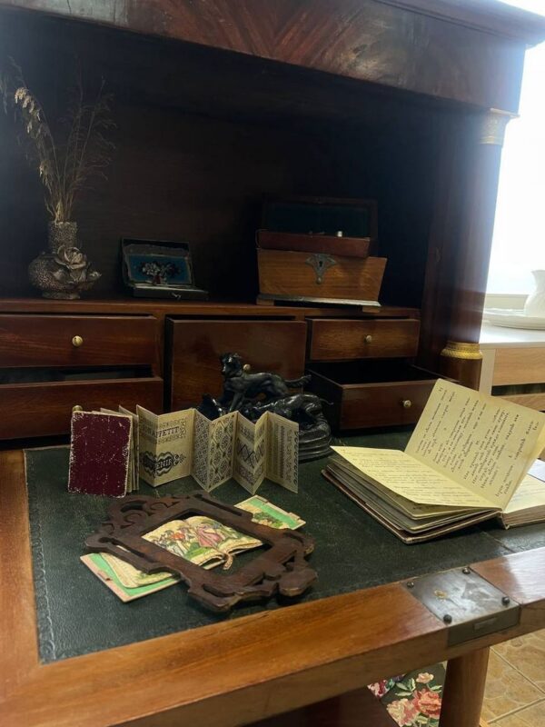 Здесь собраны и огромные сундуки, и совсем небольшие, а ещё старинный секретер и красивые резные шкатулки, сделанные вручную. Раньше такие вещи были в каждом доме — и у богатых, и у тех, кто победнее. В одних хранили одежду, шапки, постельное бельё и посуду. Другие использовали для документов, драгоценностей и женских безделушек.