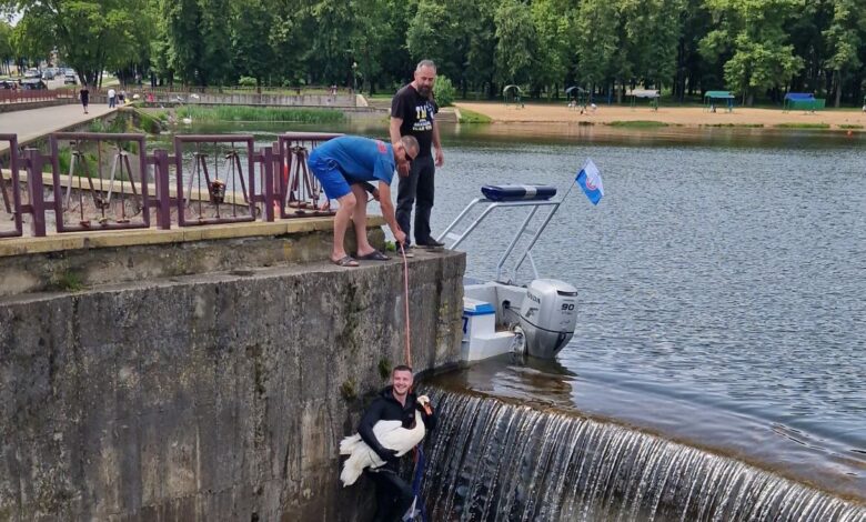 В Лиде сотрудники ОСВОД спасли лебедя, который упал в водосброс
