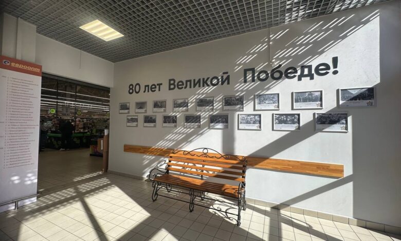 В магазине «Евроопт» открылась новая фотовыставка, посвященная 80-летию Победы.