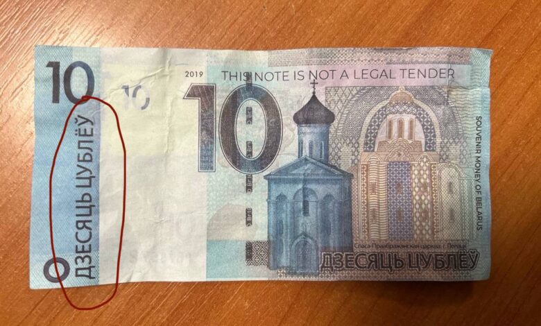 В Молодечненском районе неоднократно фиксируются случаи сбыта изделий, имитирующих настоящие белорусские банкноты. Эти поддельные купюры внешне напоминают денежные знаки Национального банка Республики Беларусь: они выполнены в аналогичных размерах и стилистике, воспроизводят элементы дизайна действительных банкнот. Однако на них размещены явные предупреждения: «дублёў», «цублёў», «Souvenir money of Belarus», «Бiлет банка прыколаў», «Не является платежным средством» и аналогичные надписи, указывающие на их сувенирный характер.