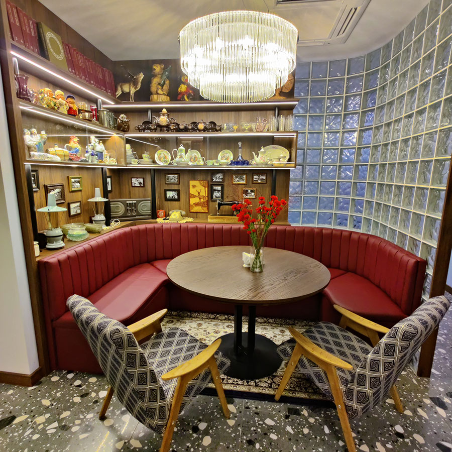 Далее идет эпоха модерна: ее атмосферу воссоздает реконструированное заведение конца XIX – начала XX века. Плавные линии мебели, мерцание хрустальных люстр и звуки пианино перенесут во времена, когда пивная культура была символом светской жизни и утонченного вкуса.