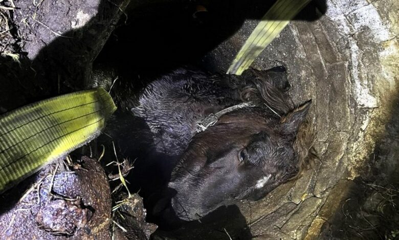 Сообщение спасателям поступило в четверг вечером. Мужчина рассказал, что лошадь провалилась в яму и не может выбраться.