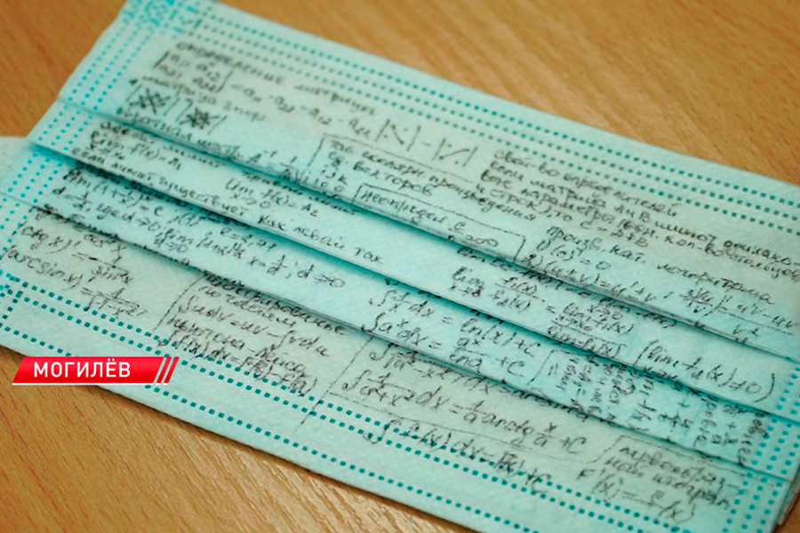 Молодые люди писали подсказки на стельках, был даже случай, когда ответы пронесли просто в батоне. Из последних экземпляров – маска, которую студент исписал формулами.