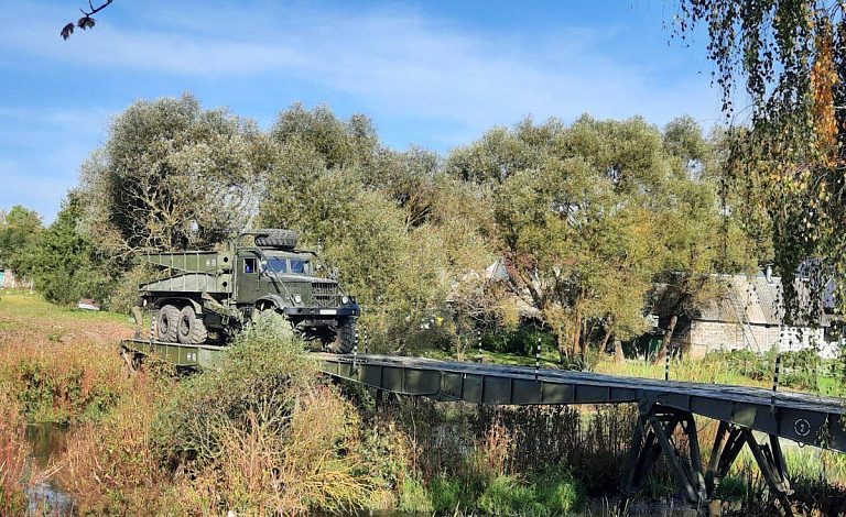 Военные инженеры установили мостовой переход, сообщили в Минобороны Беларуси. Протяженность моста – 40 метров, а грузоподьемность – 60 тонн.