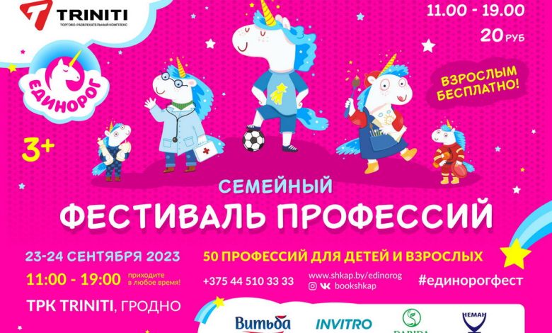 Семейный фестиваль “Единорог” — это более 50 профессий для детей! В простом и интерактивном формате дети смогут попробовать себя в роли разных специалистов, получить первую “трудовую книжку” и настоящую “зарплату”, которую можно будет потратить прямо на фестивале в магазинах от официальных партнеров — компаний Витьба, Дарида и Офистон на сладости, напитки и канцелярию!