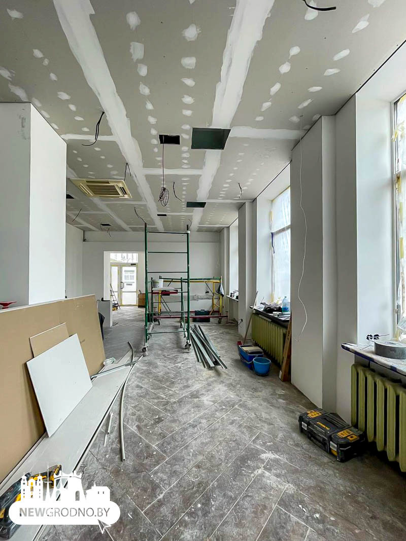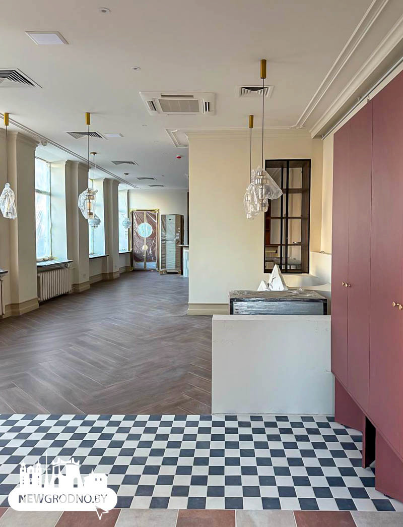 Сейчас внутри завершается ремонт. Впрочем, вместе с Newgrodno.by уже можно оценить интерьеры будущего ресторана. Видно, что работы на завершающей стадии, а значит открытие не за горами.