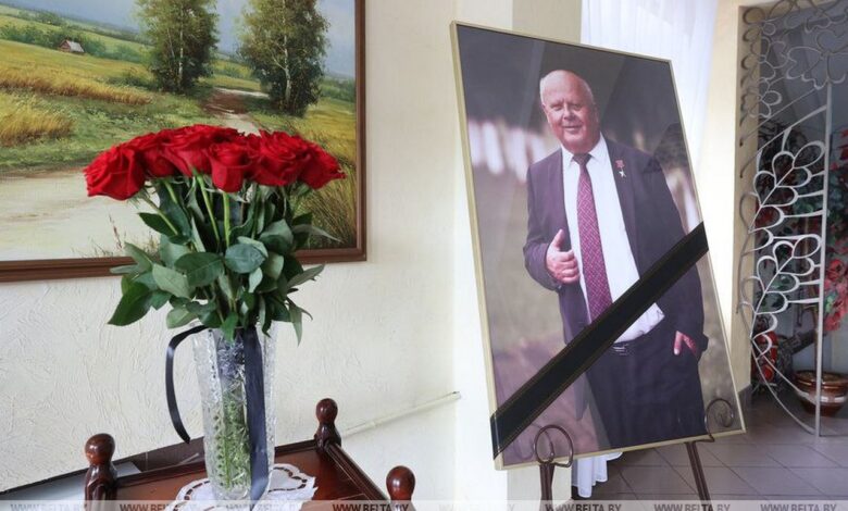 В Вертелишках проходит церемония прощания с Героем Беларуси, заслуженным работником сельского хозяйства Республики Беларусь, кандидатом сельскохозяйственных наук, председателем правления СПК «Прогресс-Вертелишки» Василием Ревяко, сообщает корреспондент БЕЛТА.