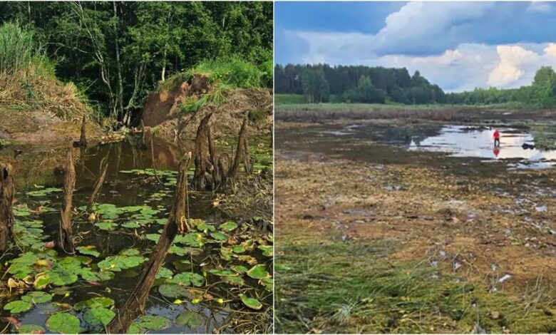 Из-за сильных ливней 19 июля озеро пострадало от паводков — вода начала размывать берега, уровень снизился примерно на полметра. А уже в среду, 23 июля, дамба не выдержала и ее окончательно прорвало. Уроженец этих мест Дмитрий Кохан рассказал, что рыболовы пытались спасти озеро от осушения, но сделать этого не удалось.