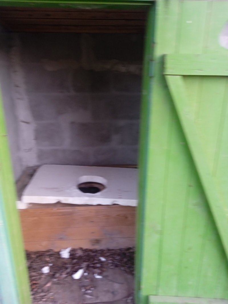 Сам объект представляет собой стандартную выгребную яму, оборудованную наподобие унитаза, не подключенную к канализационной системе. Кабинка сделана из бетонных блоков, крыша покрыта шифером, дверь деревянная.