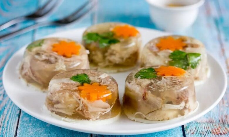 Главный компонент заливного – бульон, который превращается в желе и фиксирует ингредиенты. Это достигается путем добавления в бульон желатина или агар-агара, но можно обойтись и без них, потому что некоторые продукты сами по себе уже содержат желирующие вещества.