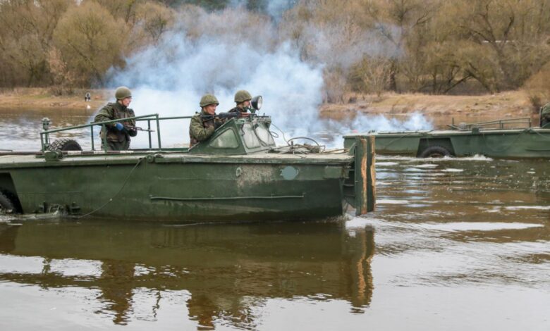 Военные инженеры отработали переправу тяжелой техники в Гродненской области