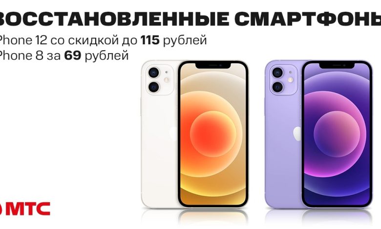В МТС можно сэкономить на покупке восстановленных смартфонов Apple. На модели iPhone 12 64GB грейдов А и В действуют скидки до 115 рублей. А при покупке смартфон iPhone 12 Pro любого грейда можно дополнительно приобрести iPhone 8 за 69 рублей.