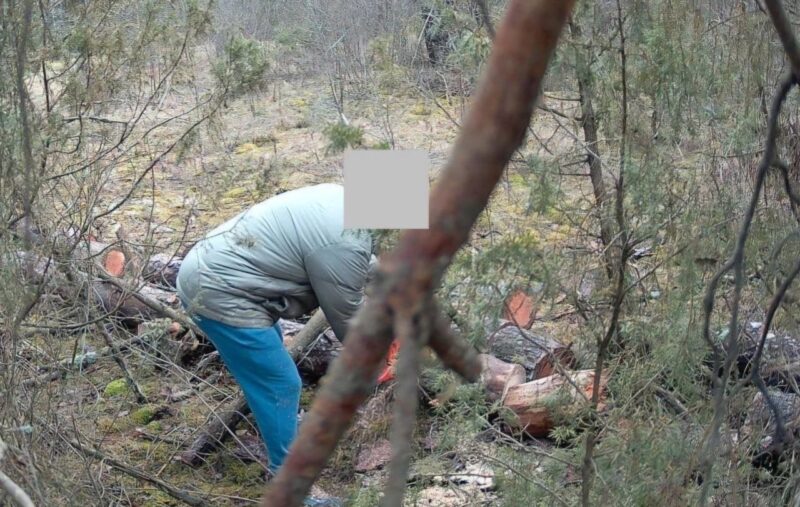 В Гродненском районе выявили незаконную вырубку леса: фотоловушка зафиксировала, как местный житель спилил пять сухостойных сосен.