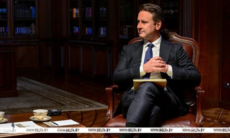 «Я действительно очень ценю возможность с вами поговорить, особенно в такой момент, когда отношения между Соединенными Штатами и Беларусью интересно развиваются», — отметил журналист в начале беседы, имея в виду недавние визиты американских дипломатов в Минск, вызвавшие широкий резонанс. «Вот эта активизация, если можно так сказать, диалога между администрацией Трампа и государством Беларуси», — уточнил он. По его словам, редакция Time сочла этот этап особенно значимым для поездки в Беларусь и проведения интервью с её главой, чтобы через личную встречу лучше понять, что происходит в стране.