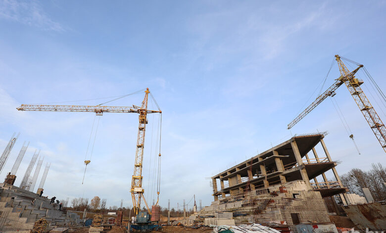 — С учетом масштаба и высоты ежедневно уходит огромное количество арматуры и бетона. Высота перекрытий — более 16 метров, и это создает некоторые трудности, но профессионалы успешно справляются. Интересное решение выбрано для главного вестибюля, запроектированного как двухсветное пространство с открытыми лестницами и панорамными лифтами. На втором уровне он примыкает к обоим залам и бассейну, между которыми будут установлены витражи, что позволит наблюдать за происходящим прямо из вестибюля.