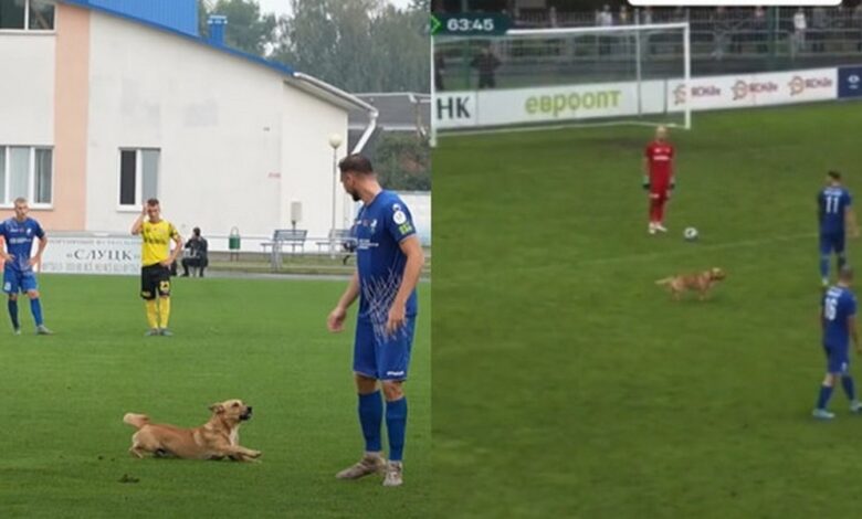«На замену» пес выбежал в районе 63-й минуты. Подобные случаи не то чтобы большая редкость в футболе, но обычно проблему удается решить быстрее, в то время как матч в Слуцке был прерван более чем на две минуты.
