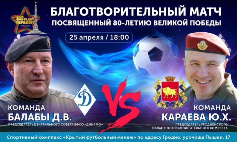 Благотворительный матч по футболу, посвященный 80-летию Великой Победы и 102-летию образования БФСО «Динамо», пройдет в Гродно.