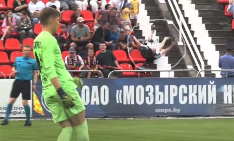 В Мозыре во время футбольного матча болельщик упал с трибуны — клуб рассказал о его состоянии
