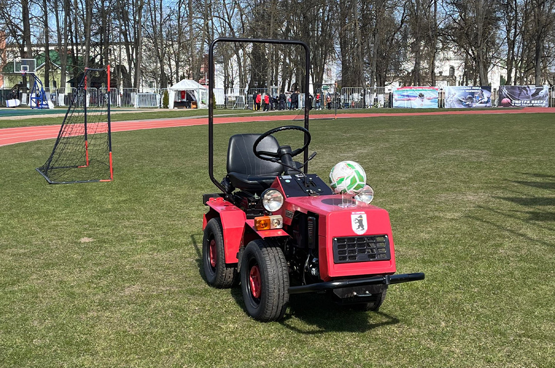 В субботу стартовал чемпионат Беларуси в первой лиге. К открытию сезона в Сморгони подошли нестандартно — мяч для арбитра привезли на маленьком тракторе.