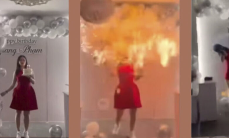 32-летняя Зянг Фам решила отметить свой день рождения вместе с друзьями и близкими в ресторане. В какой-то момент она решила сфотографироваться c тортом и шарами, наполненными водородом, и это стало главной ошибкой.