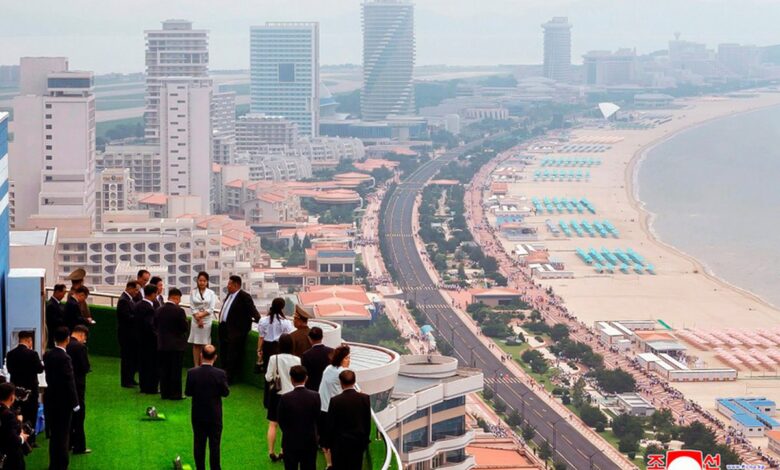 Председатель КНДР вместе с дочерью осмотрел аквапарк, пляж и отели. А затем вечером прошел концерт и состоялся салют.