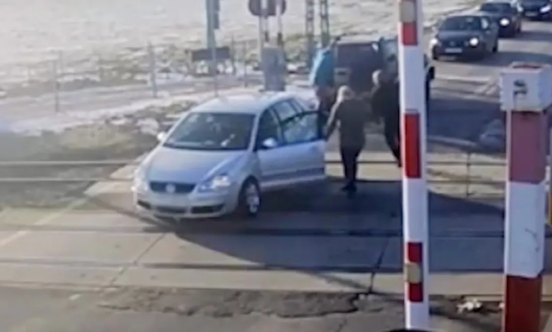 Триллер на ж/д переезде в Польше — посмотрите на чудесное спасение застрявшего автомобиля