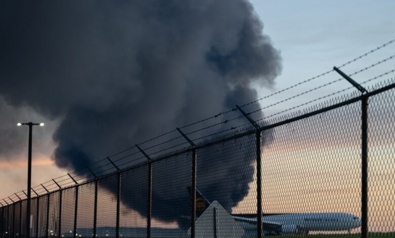Возник большой пожар, из-за которого полиция призвала всех в радиусе 8 км от аэропорта «находиться в укрытии» и избегать места крушения.