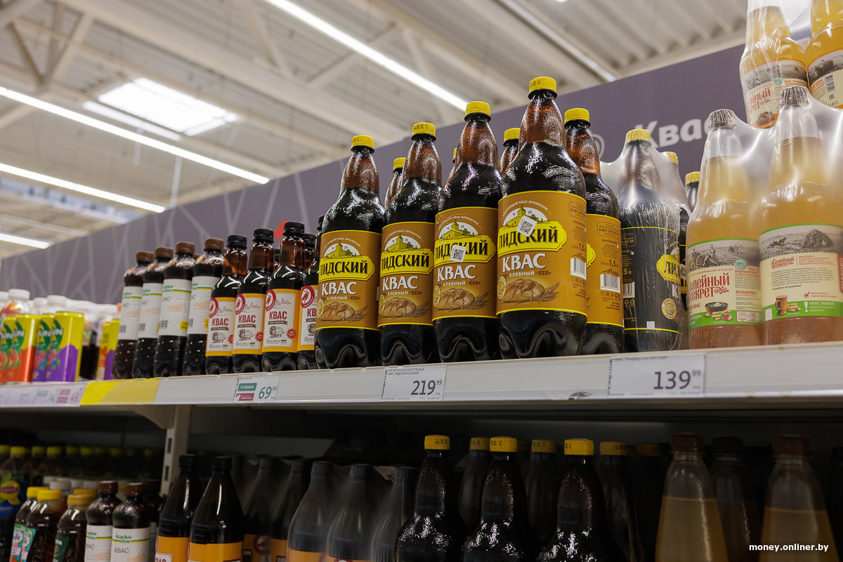 Тут нас ждет уже более крупная подборка белорусских товаров. Например, квас «Лидский» стоит 219,99 российского рубля, что составляет примерно 8 белорусских. В Минске такая бутылка обойдется в 3,65 рубля.