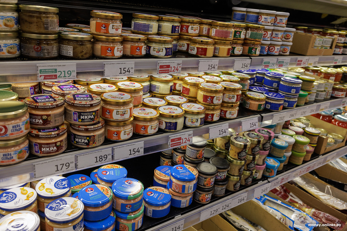 А тут пересчитываем цену икры Bremor с креветкой: 154,99 российского рубля — это 5,66 белорусского. В Минске такую банку можно пробить на кассе за 4,74 рубля.