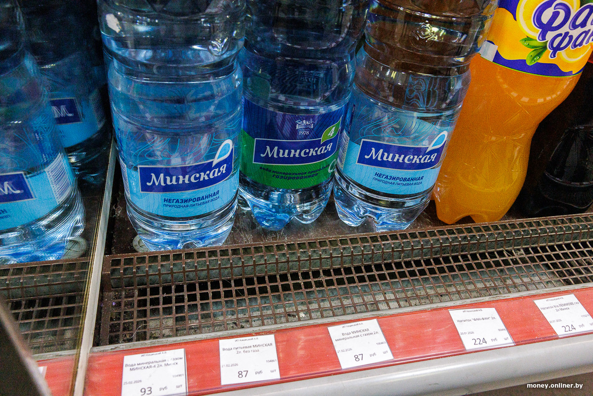 Сверяем ценники: 87 российских рублей за газированную воду — это примерно 3,17 белорусского. В одном из минских магазинов мы нашли такую за 2,38 рубля.