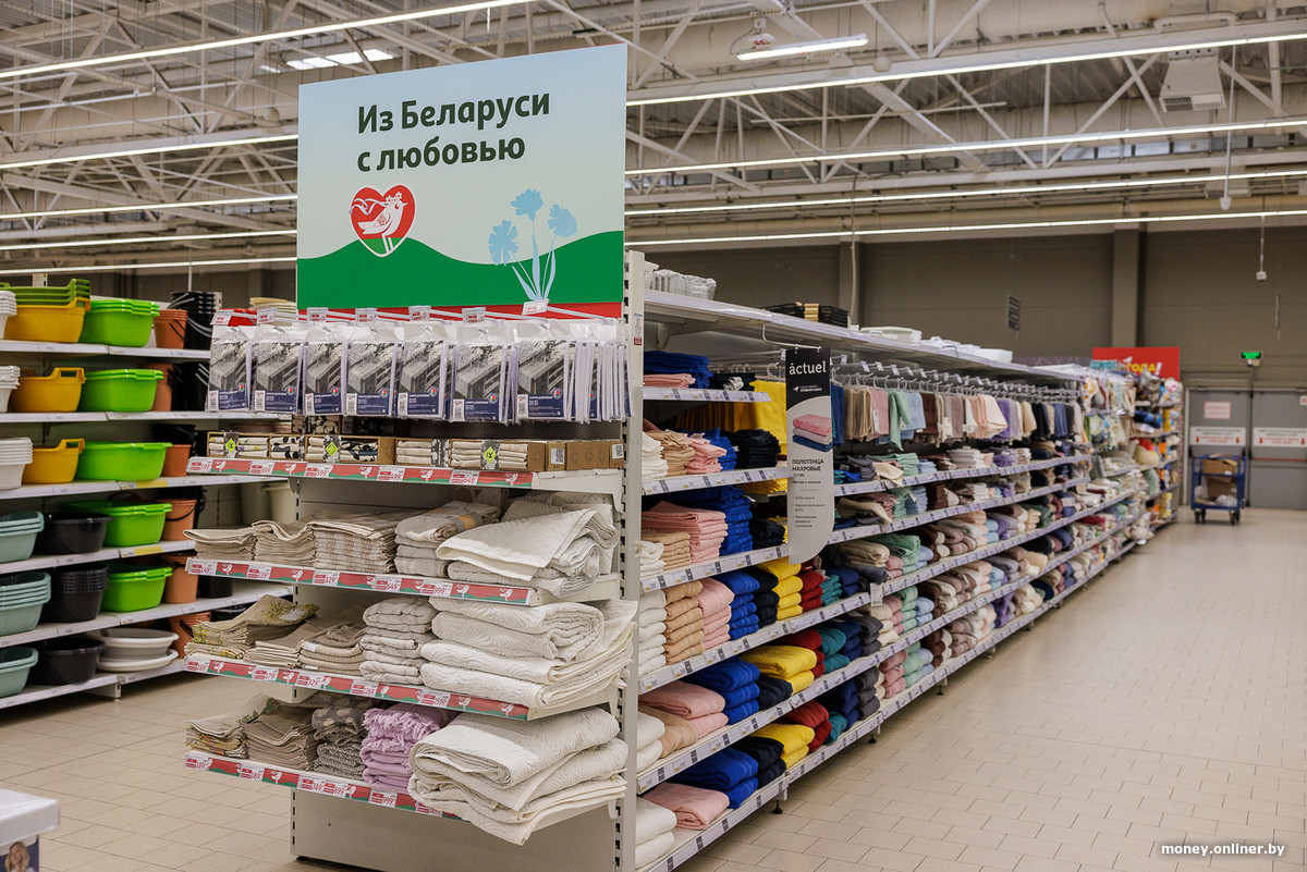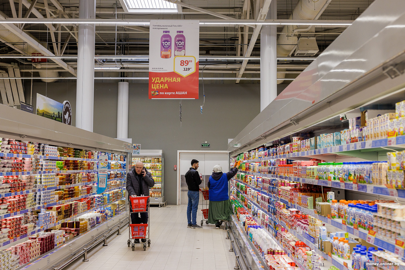 Дальше искать белорусские продукты на полках московского ретейла отправляемся в «Ашан». Это крупная французская сеть, которая представлена и в Москве. Название в дословном переводе означает «пение птиц», а на логотипе нарисована зарянка. В России компания работает с 2002 года, сейчас магазинов по всей стране уже более 200. Ассортимент составляют товары локального производства, импортные и выпущенные под собственной торговой маркой — их можно узнать по все той же красной птице на упаковке.